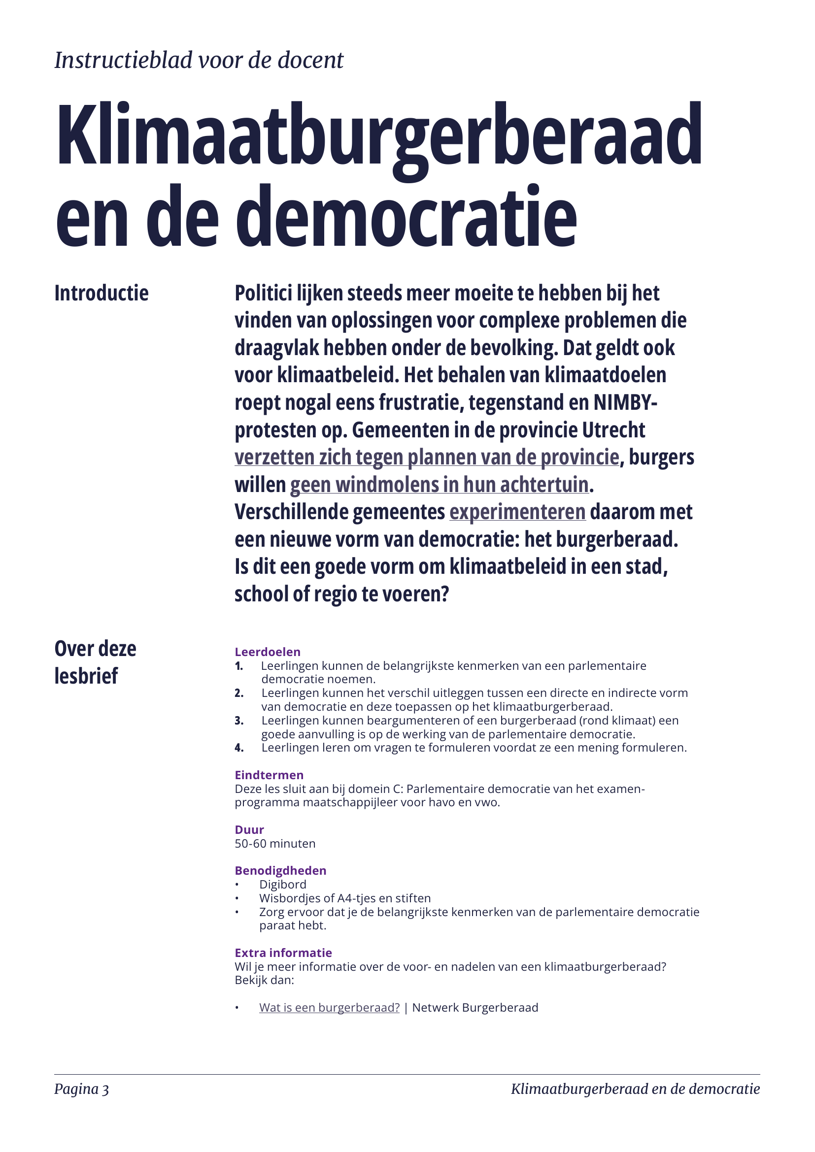 - Een mening te vormen over de wenselijkheid van een burgerberaad binnen de parlementaire democratie.
