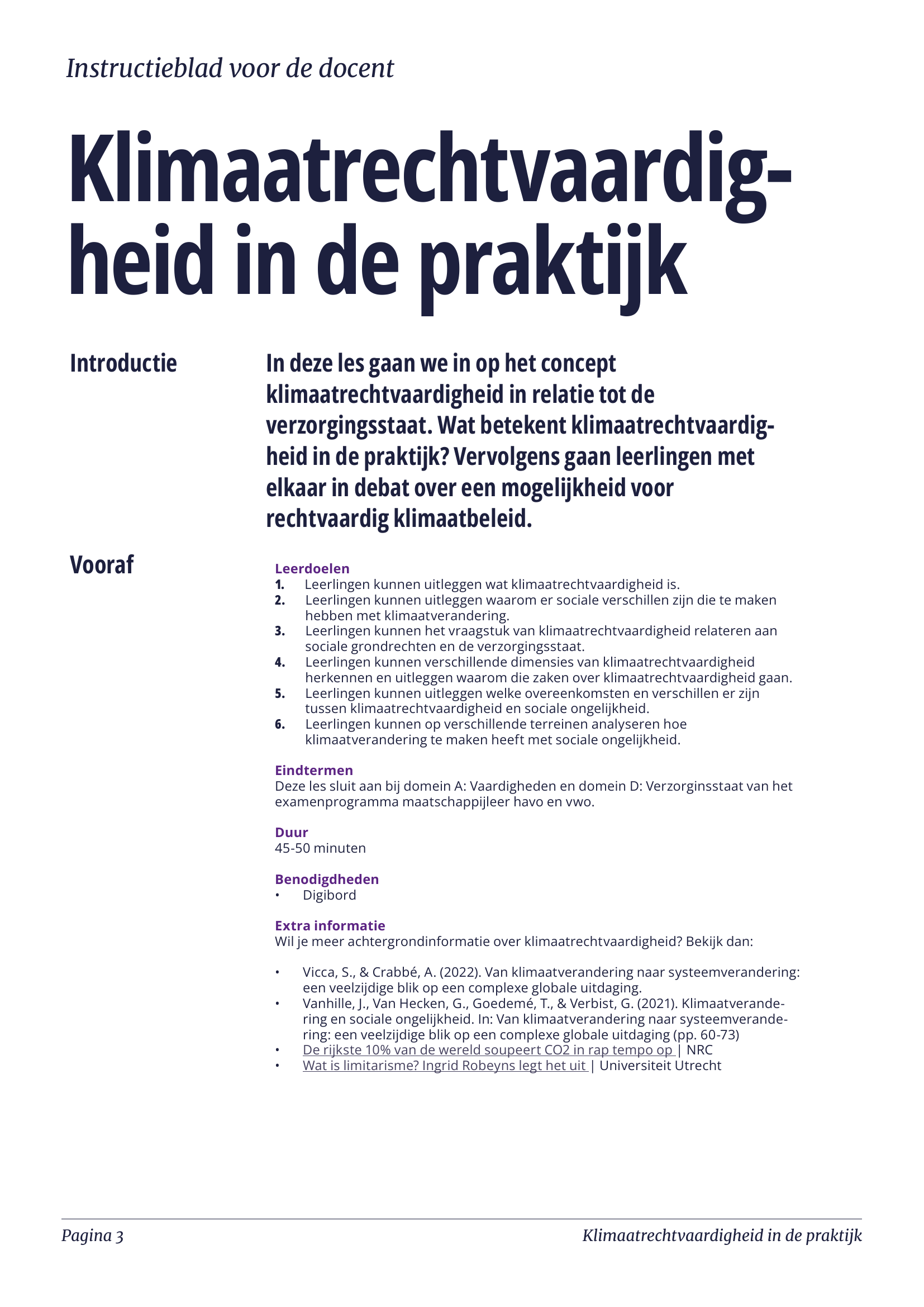 Deze les duurt ongeveer 50 minuten. Wil je dieper ingaan op klimaatrechtvaardigheid? Bekijk dan ook onze lessenserie ‘Hoe eerlijk is klimaatverandering?‘.