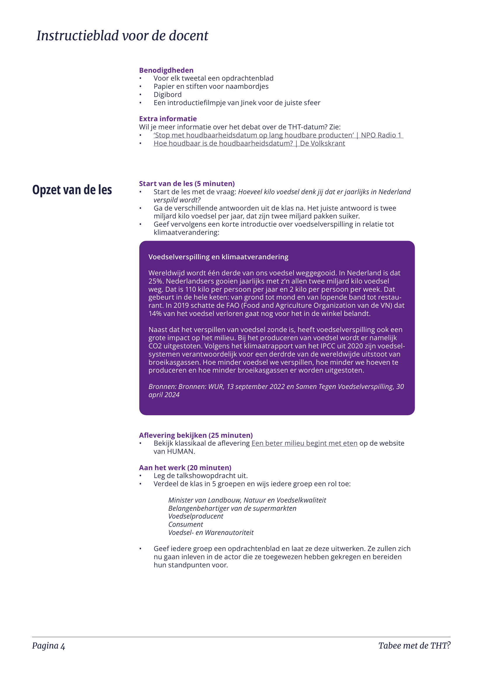 In deze les gaan leerlingen met elkaar in debat over het wel of niet afschaffen van de THT-datum. Goed om te weten: we maakten ook een variant op deze les voor bij maatschappijwetenschappen.